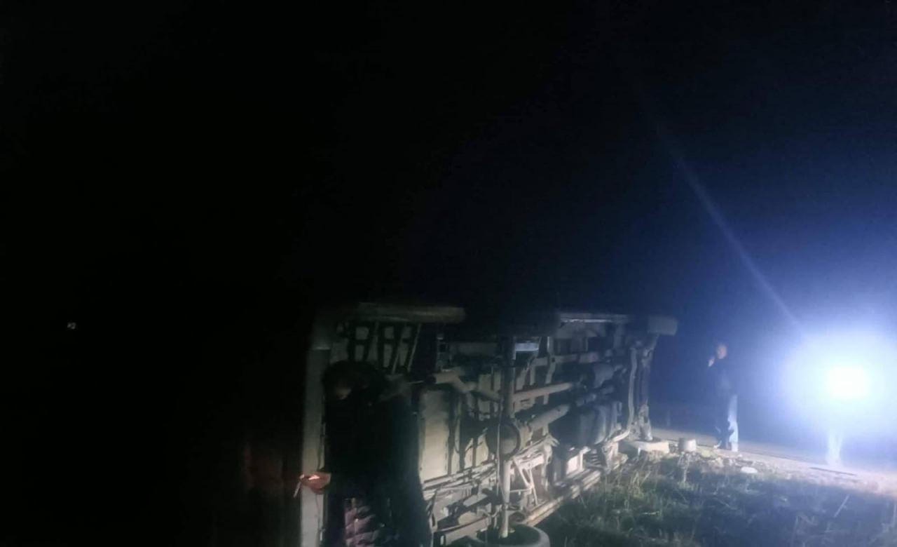 Ankara’nın Çayırhan ve Nallıhan’dan işçileri taşıyan servis aracı, sabah saatlerinde yağmurdan ötürü kayganlaşan Nallıhan-Göynük yolunda kontrolden çıkarak devrildi.