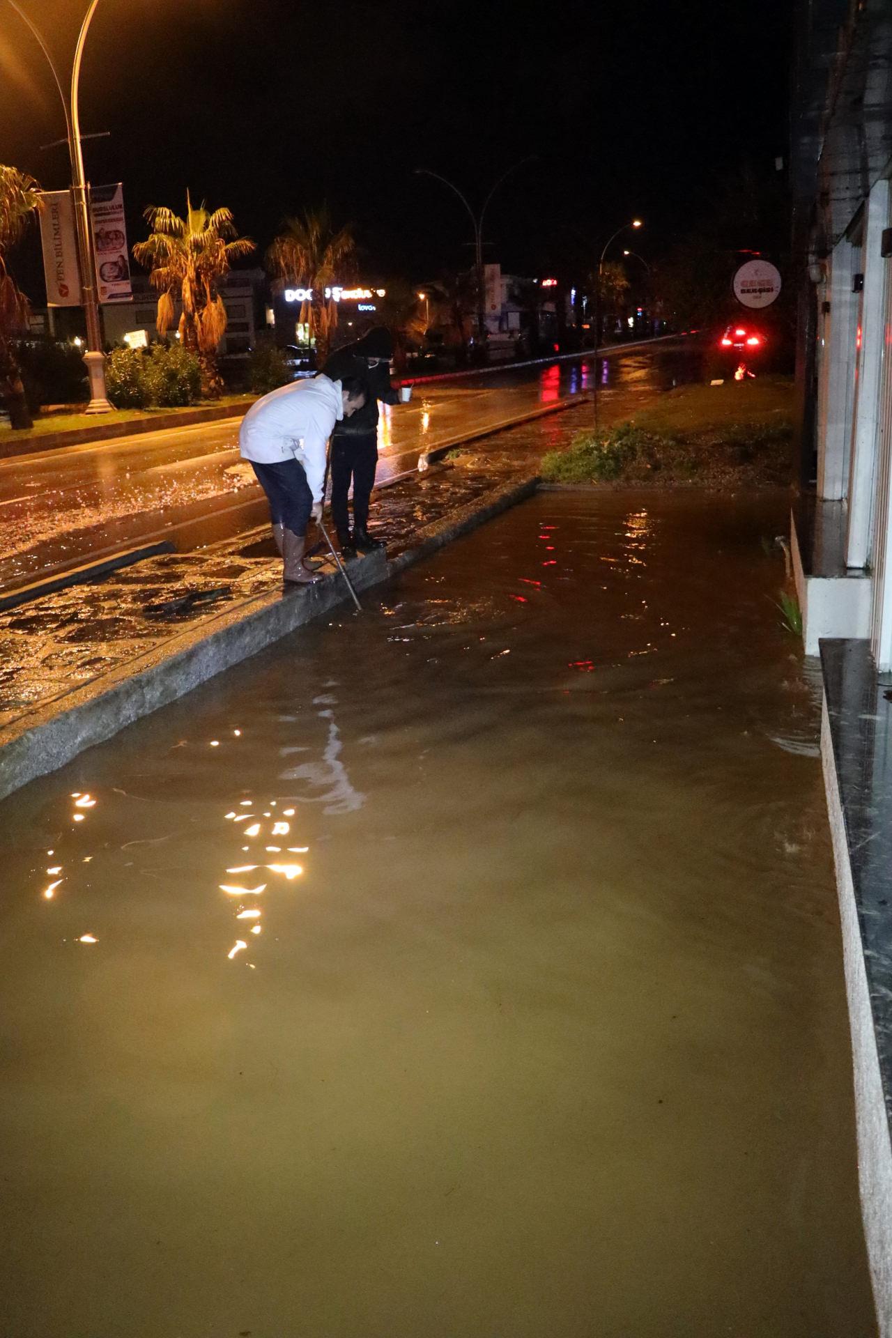 Konacık ve Gümbet bölgesindeki derelerden gelen sular Bitez Mahallesi’nden denize ulaştı. Derelerin debisi yükselirken, bölgedeki bazı cadde ve sokaklar da sular altında kaldı.