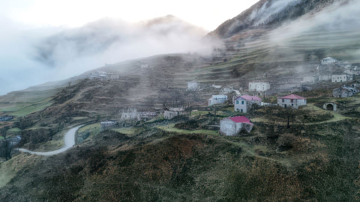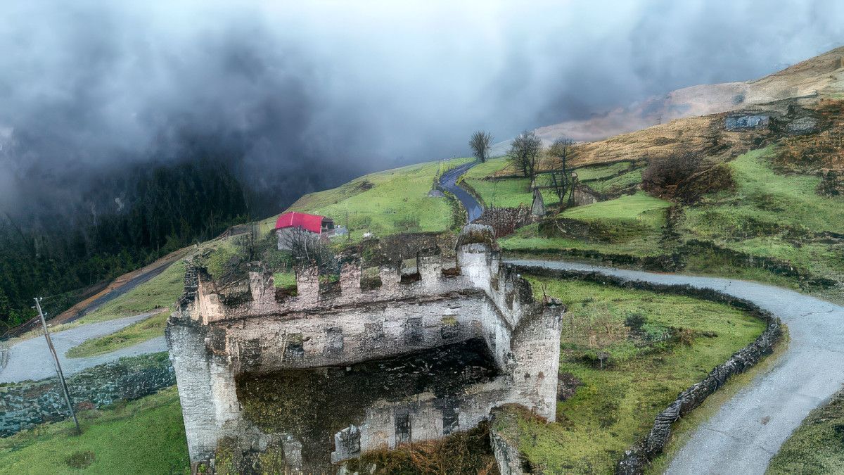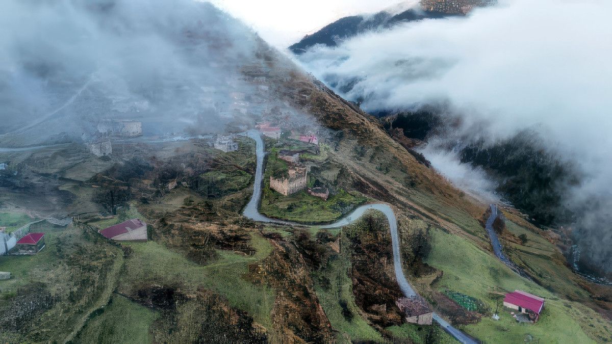 Geçmişi Orta Çağ’a kadar uzanan, ‘Gökyüzüne yakın saklı kent’ olarak da bilinen Santa Harabeleri, sonbahara tabiatının sis ve bulutları arasında renk cümbüşüyle veda ediyor.