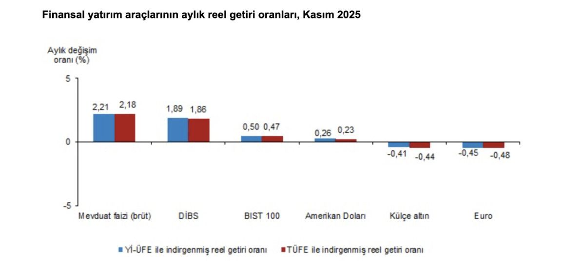 TÜİK, kasım ayına ilişkin “finansal yatırım araçlarının reel getiri oranları”nı açıkladı.
