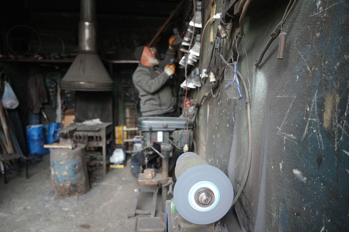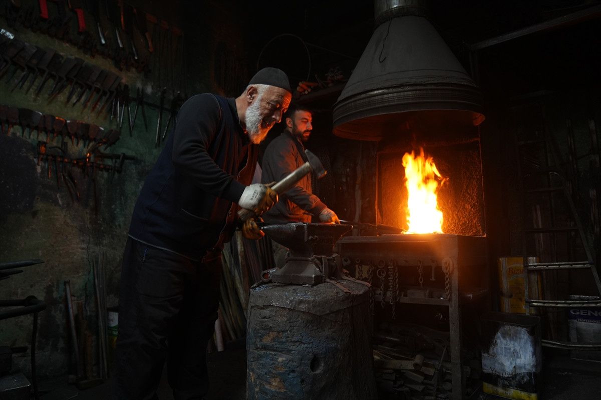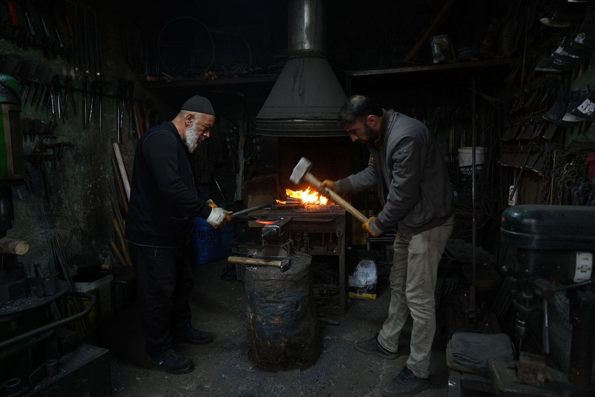 Kale Mahallesi’ndeki Eski Çarşı’da bulunan atölyesinde balta, çekiç, murç, zincir, kapı kolu, kazma ve çapa gibi aletlerin tamirini ve üretimini yapan Pınar, mesleği bugünlere kadar taşıdı.