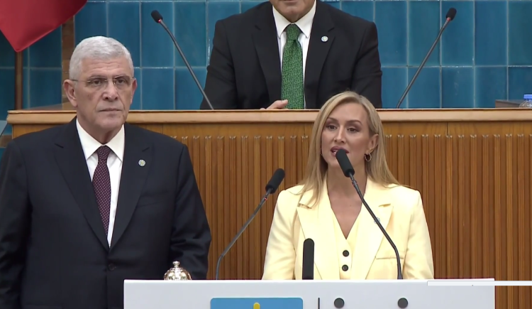 Rozet takma töreni, İYİ Parti grup toplantısında gerçekleştirildi ve Genel Başkan Müsavat Dervişoğlu tarafından Özkal Sayan’a takıldı.