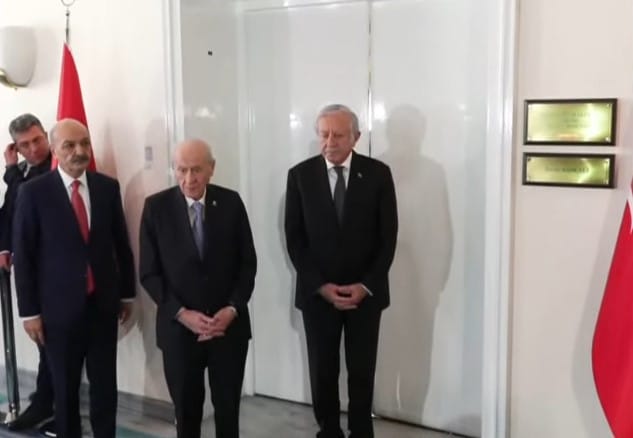 “Pervin Buldan, Mithat Sancar ve Faik Özgür Erol’dan oluşan DEM Parti İmralı heyeti, MHP Genel Başkanı Devlet Bahçeli ile an itibarıyla görüşüyor. Devlet Bahçeli’ye Mustafa Kalaycı eşlik ediyor ve Celal Adan eşlik ediyor. Bu şekilde bir görüşme az evvel başladı, bir saat sürmesi bekleniyor ve çıkışta da bir açıklama yapılmasını bekliyoruz.